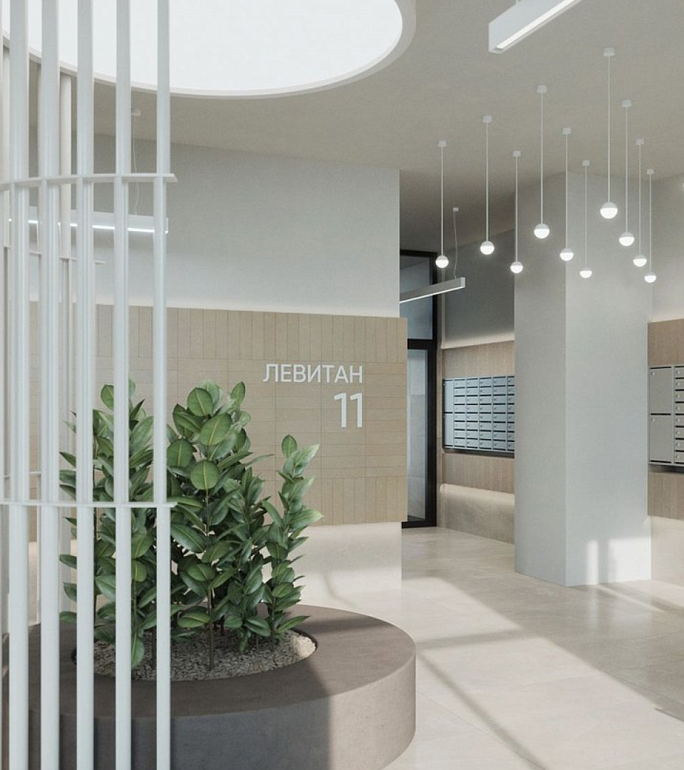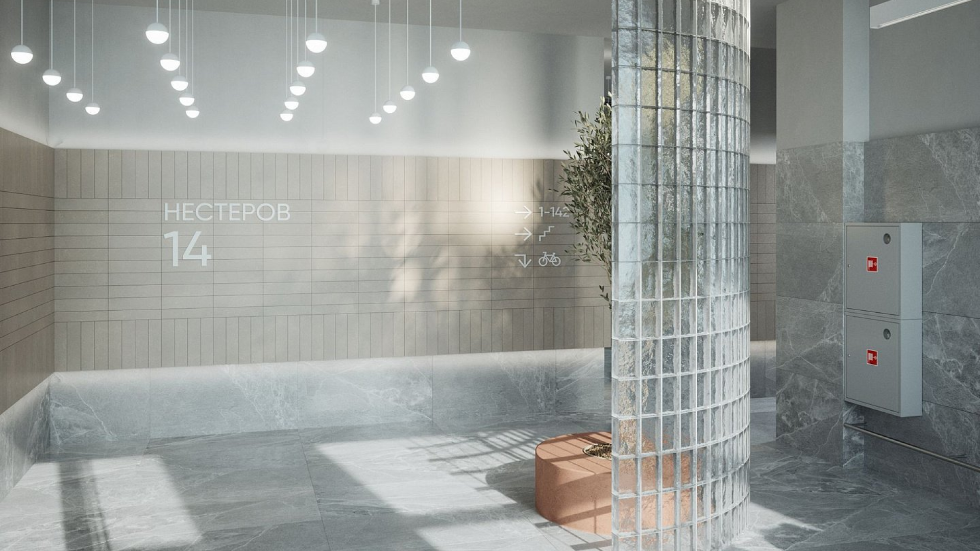 В основе цветового решения лежит теплая монохромная гамма с элементами терракотовых оттенков. Натуральные материалы, продуманное зонирование, оригинальный дизайн – только заходя в подъезд вы уже будете погружаться в атмосферу уюта и отдыха.